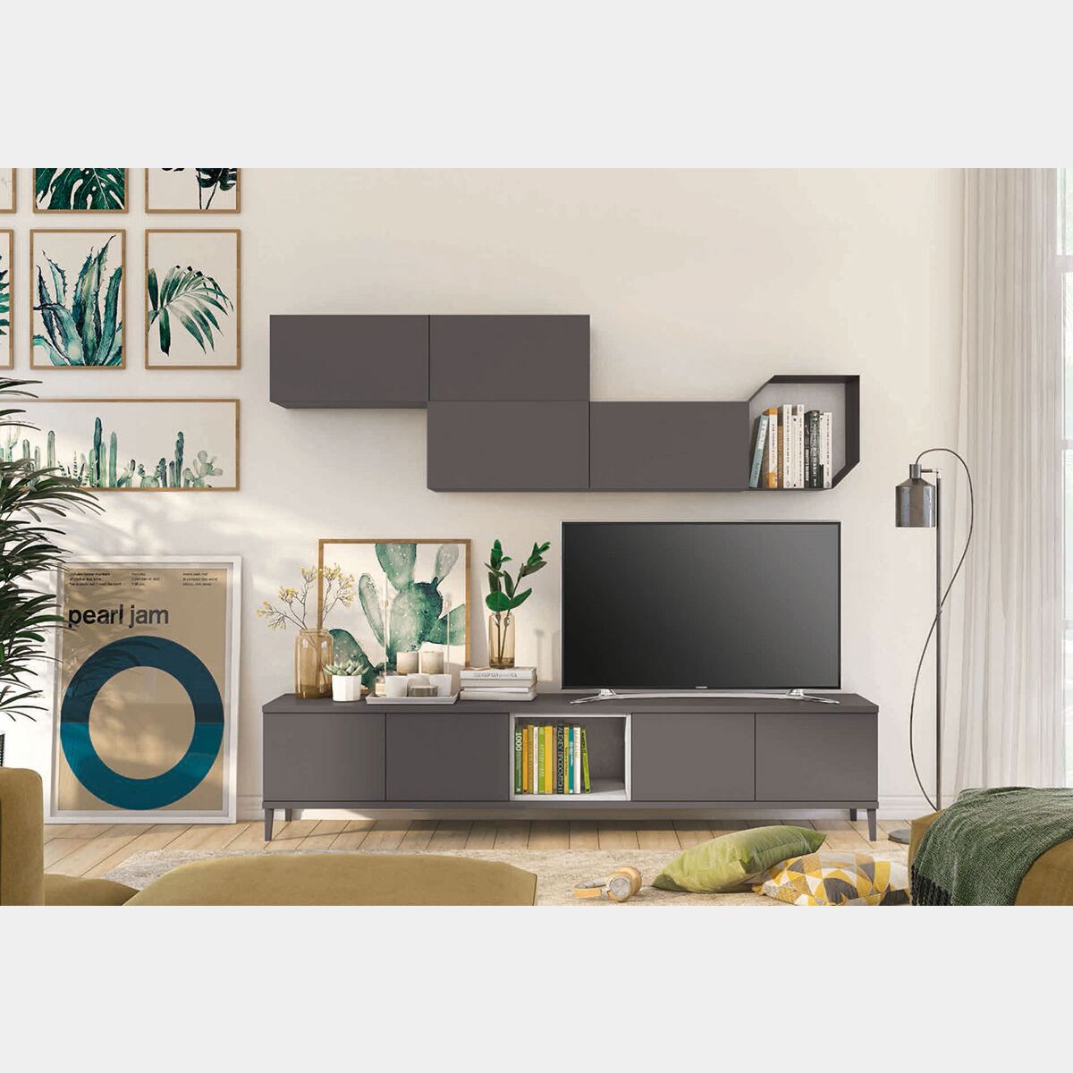 Parete attrezzata per la zona living, Grigio titanio con vano a giorno