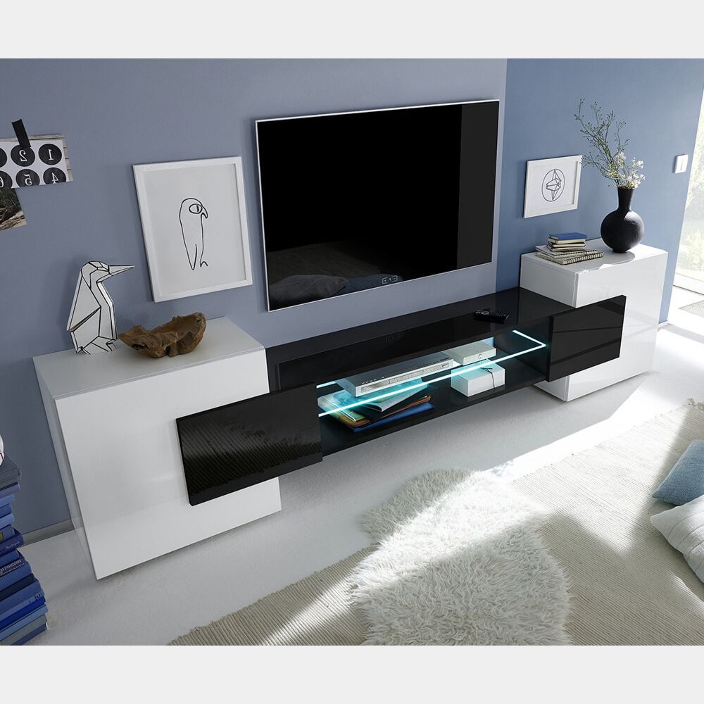 Mobile porta TV, parete attrezzata Bianco Lucido e Nero