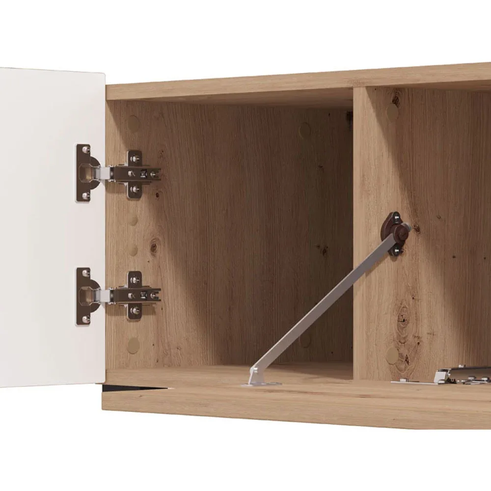 -Un porta tv che è caratterizzato da due comodi vani a giorno in cui si possono riporre strumenti elettronici ed è composta da due ante. La misura massima del televisore è di 60cm.
