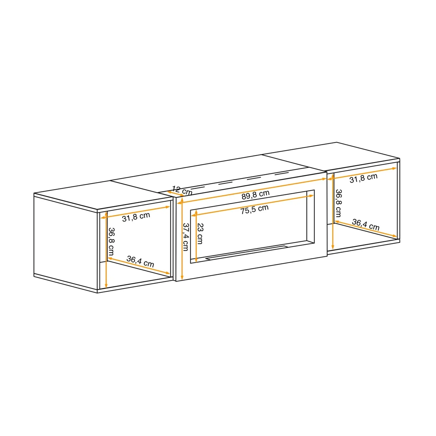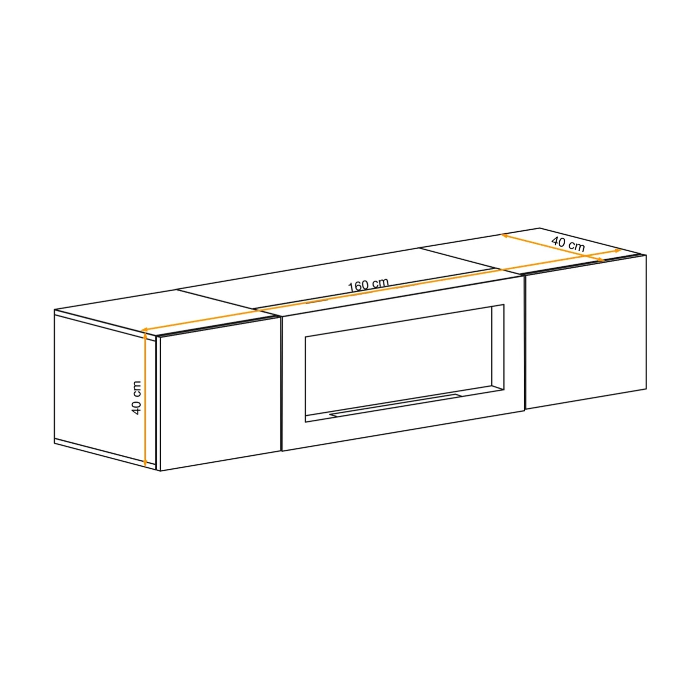 Mobiletto a parete: 2 ante a sinistra e a destra. Al centro c'è un biocamino.