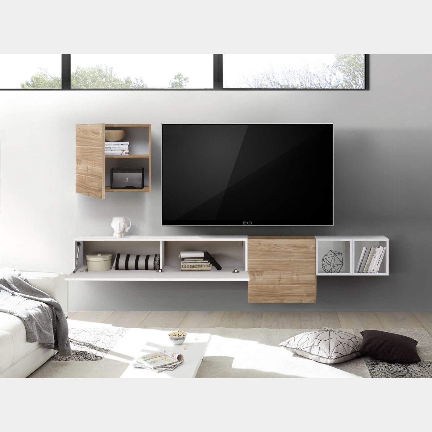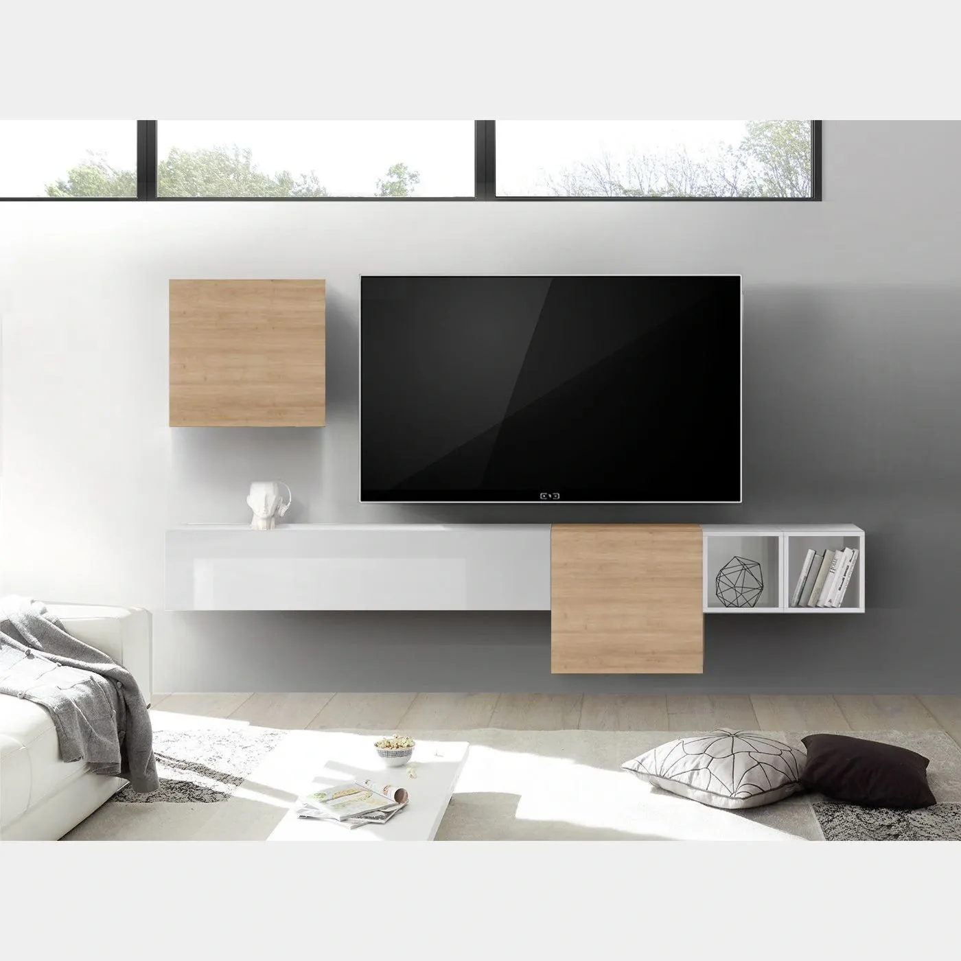 Parete attrezzata sospesa finitura Bianco Laccato Lucido e Cadiz