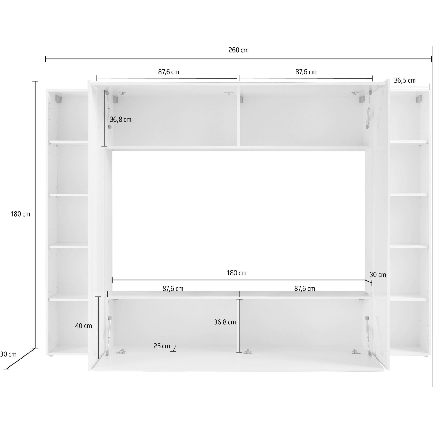 Il prodotto è una parette attrezzata di design moderno e funzionale per un arredamento informale e di sicuro impatto. La parete bianca lucida è disponibile in 6 diverse soluzioni pensate per rendere unica la tua zona living.