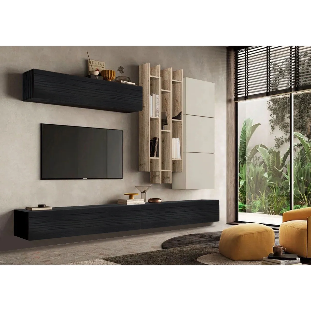 Parete attrezzata 276x30x210 h cm, Nero frassino, Cashmere, Cadiz- Logica Zenzero Shop
