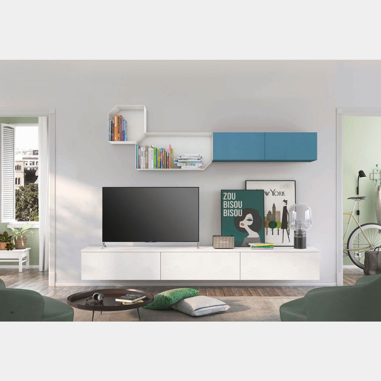 Parete attrezzata sospesa per zona living, Rovere bianco e Cadaques