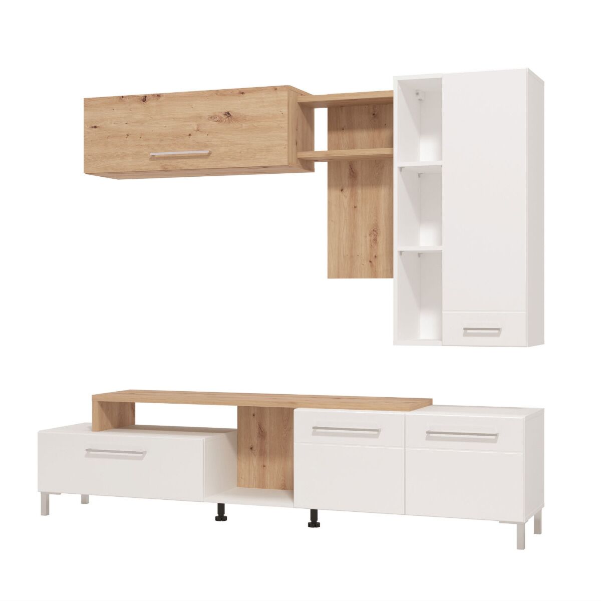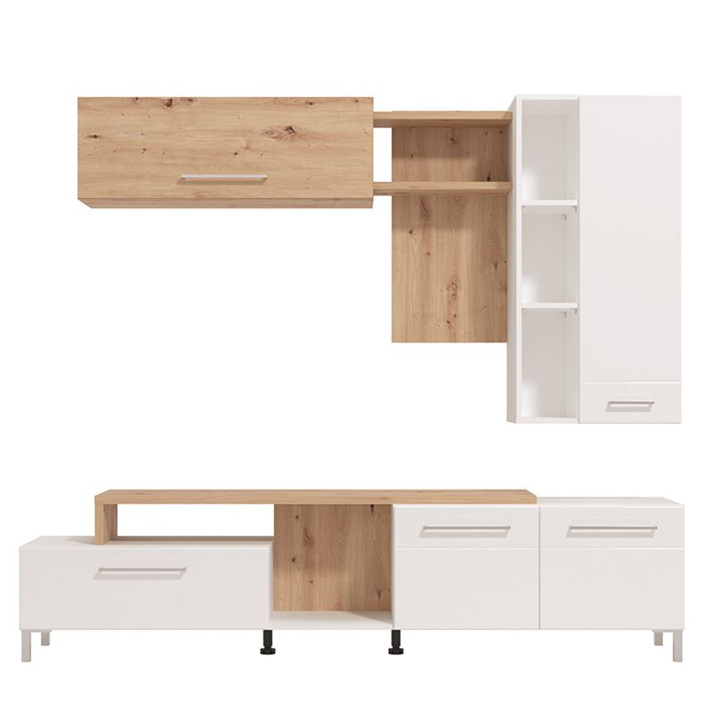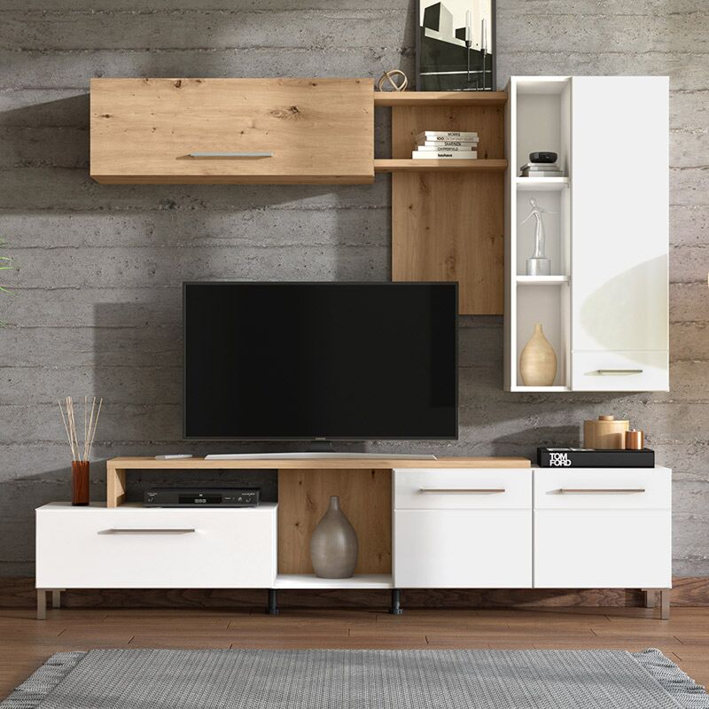 Parete attrezzata stile contemporaneo, finitura Bianco lucido e Rovere oak