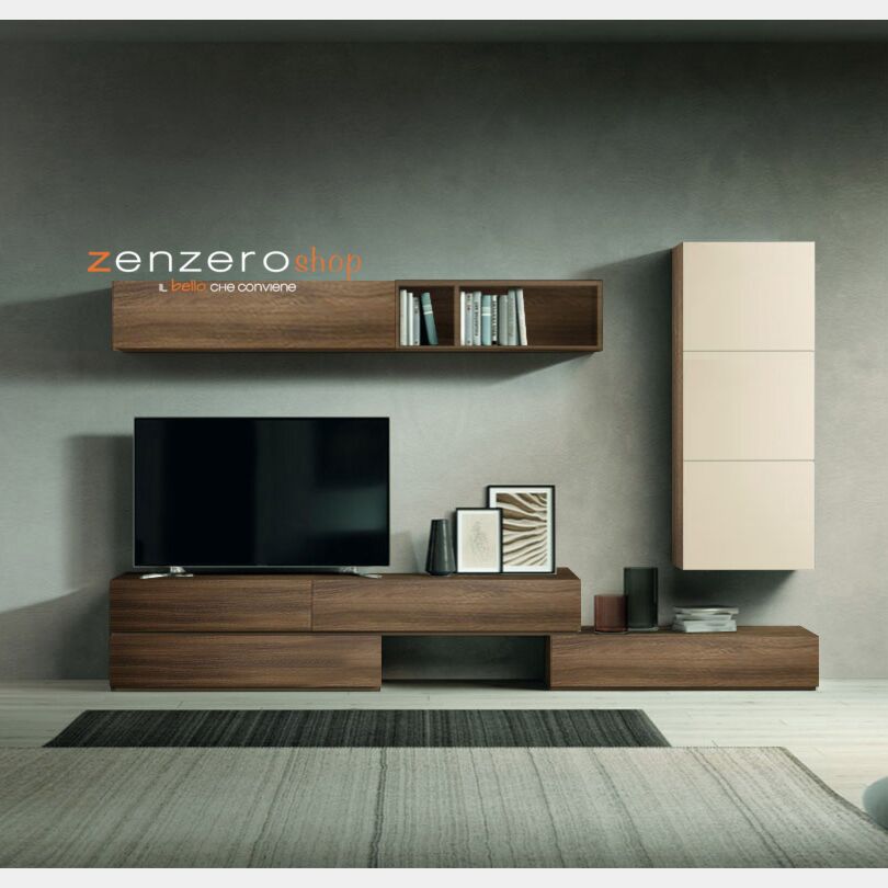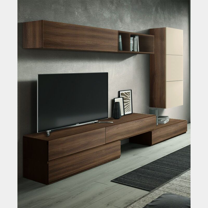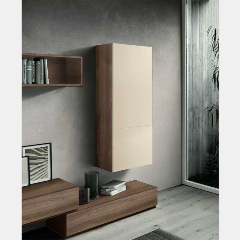 La fusione tra la finitura Quercia brown e Terra opaco genera un delicato contrasto che consente alla parete Toi 270 di donare eleganza e stile. Abbiamo unito più elementi per comporre una parete che risultasse funzionale e innovativa: dotata di una base a terra con 4 cassetti,un pensile sospeso orizzonatale (apertura vasistas), un elemento a giorno che crea 2 vani e un totem verticale garantisce un ampio spazio di appoggio, essenziale nella quotidianità.