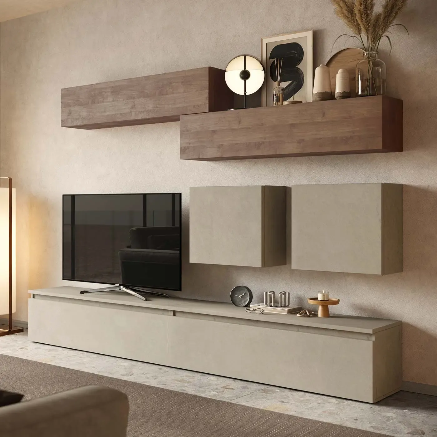 Parete attrezzata contemporanea finitura Argilla e Mercure, è una composizione Made in Italy caratterizzata da linee semplici e moderne.