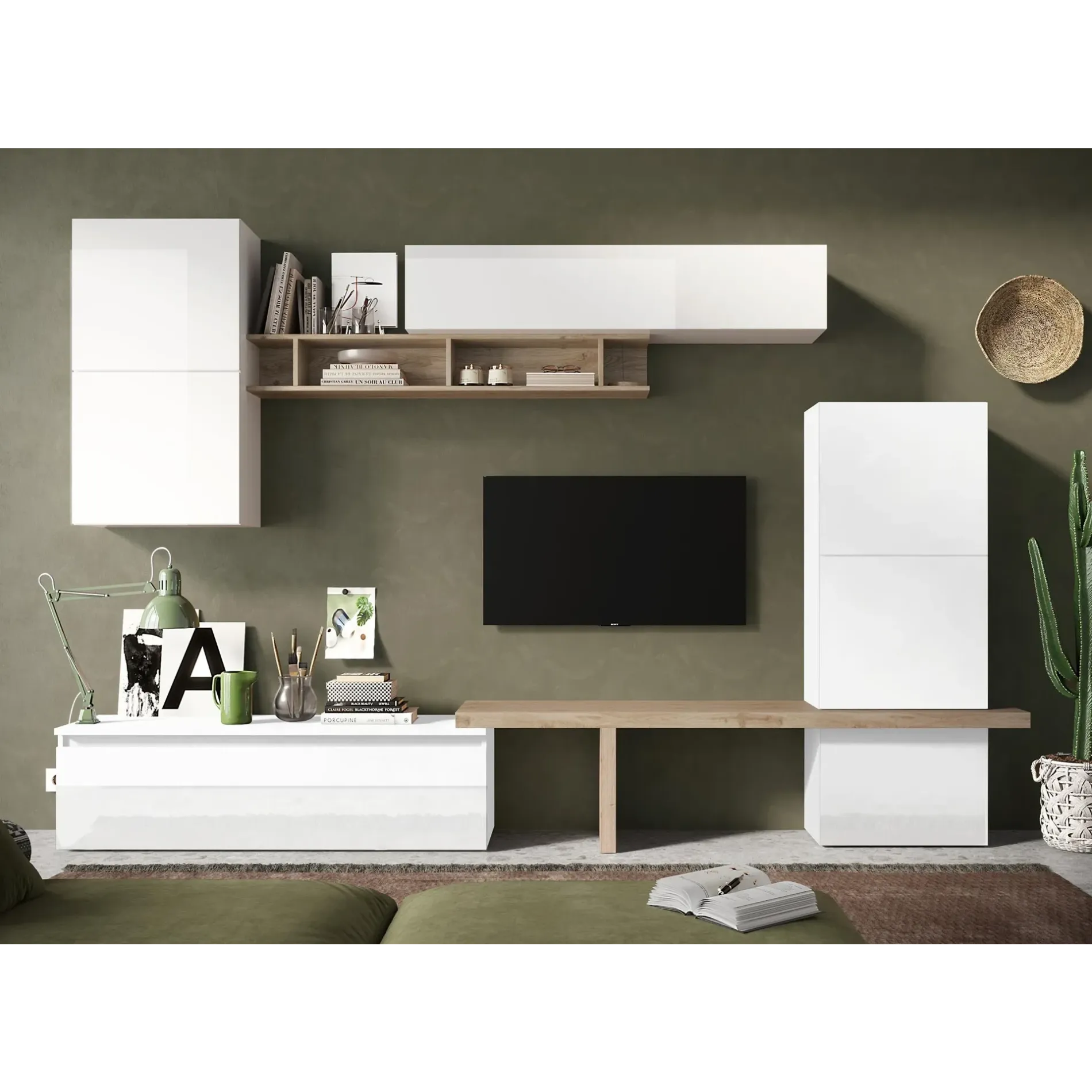 Parete moderna per soggiorni in finitura Bianco lucido e Cadiz, in promozione. Aggiungi altri elementi al tuo soggiorno oppure vedi tutta la collezione Logica.