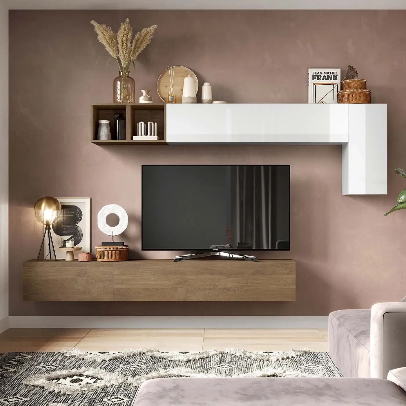 Creata con elementi assemblati e incastrati tra loro con armonia la parete garantisce un arredo funzionale e pratico, senza dover rinunciare all'estetica.