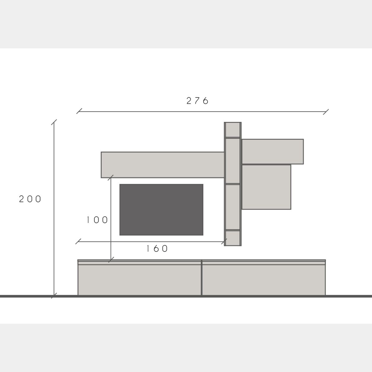 Parete attrezzata 276x40x200 h cm, Gesso, Bianco lucido e Ardesia, collezione Logica