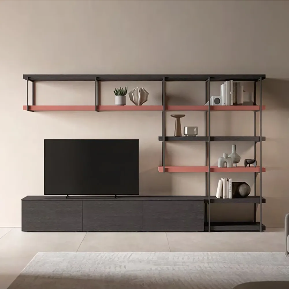 Parete attrezzata SKT15 Tomasella, Rovere carbone e Laccato Rubino