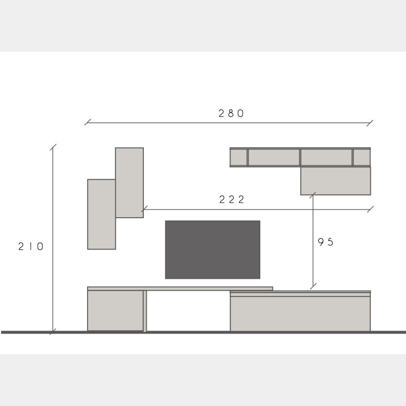 Parete attrezzata 280x40x210 h cm, Cadiz e Gesso, collezione Logica