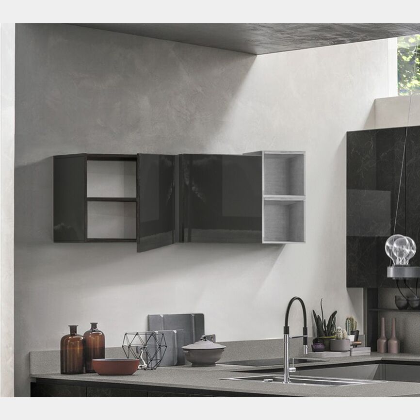 Il pensile da cucina è disponibile anche in altre finiture come: bianco lucido, noce dark, ossido, grigio artico, beton, ossido, giallo, rosso, blu e marmo lucido nero.