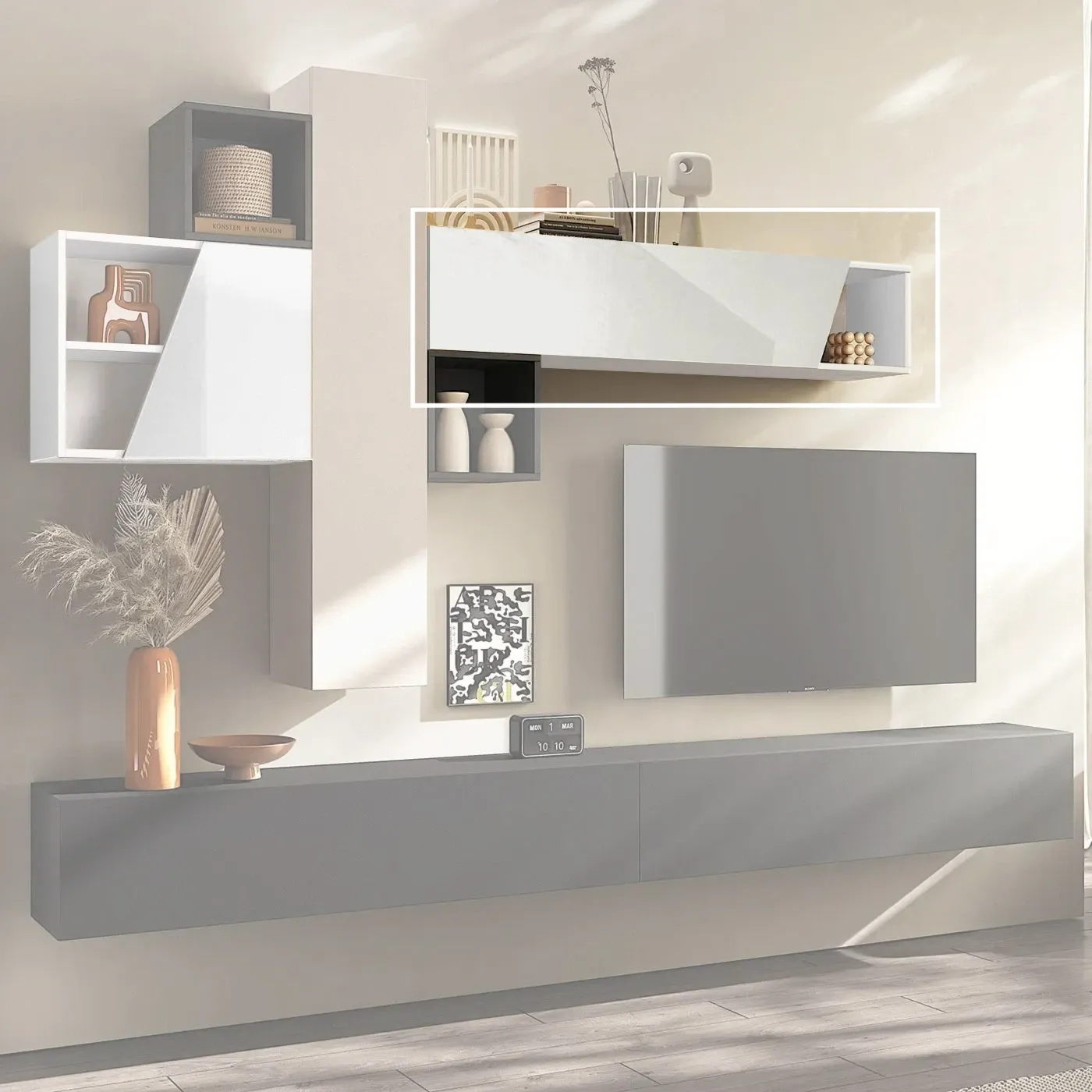 Pensile con anta obliqua 138x30x29 h cm, Bianco lucido, collezione Logica