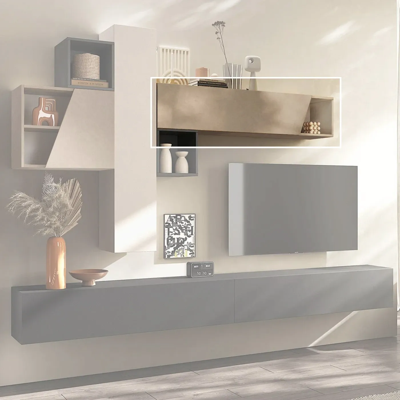 Pensile con anta obliqua 138x30x29 h cm, Argilla, collezione Logica