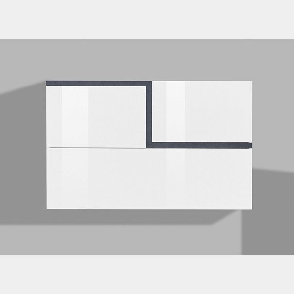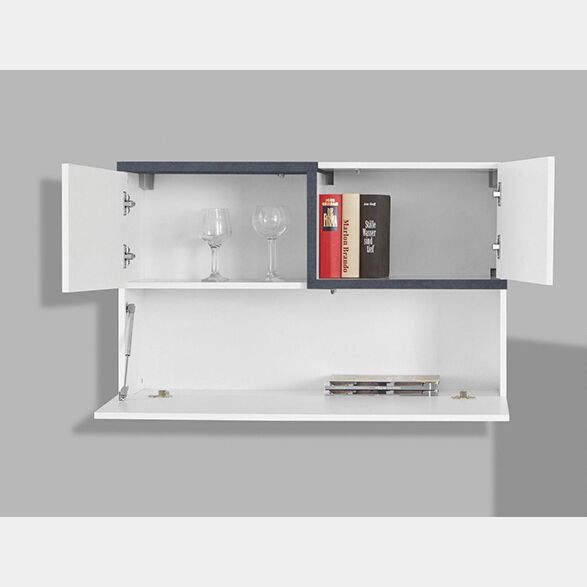 Pensile sospeso con una ribalta e 2 ante in finitura Bianco lucido e Ardesia