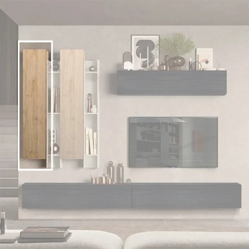 Nella pensile verticale sono presenti inoltre due pratici ripiani interni perfetti per contenere tutti i vostri oggetti di uso quotidiano e mantenere la vostra zona giorno sempre in ordine.