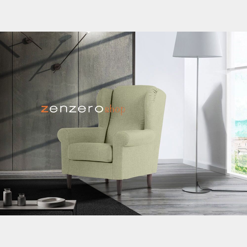 Poltrona con braccioli, tessuto sfoderabile in finitura Agave