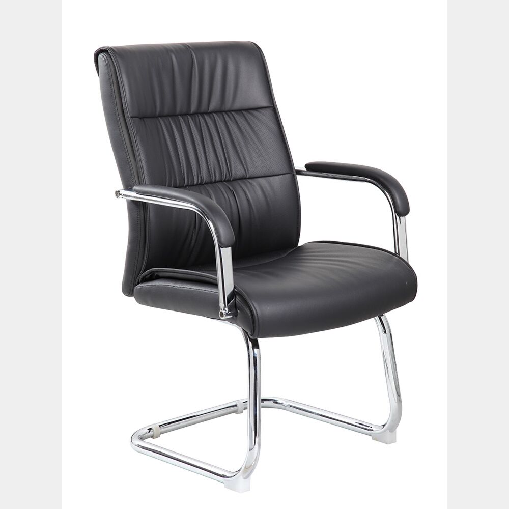 La poltrona è dotata di braccioli in acciaio cromato con copertura nera in PU imbottito.