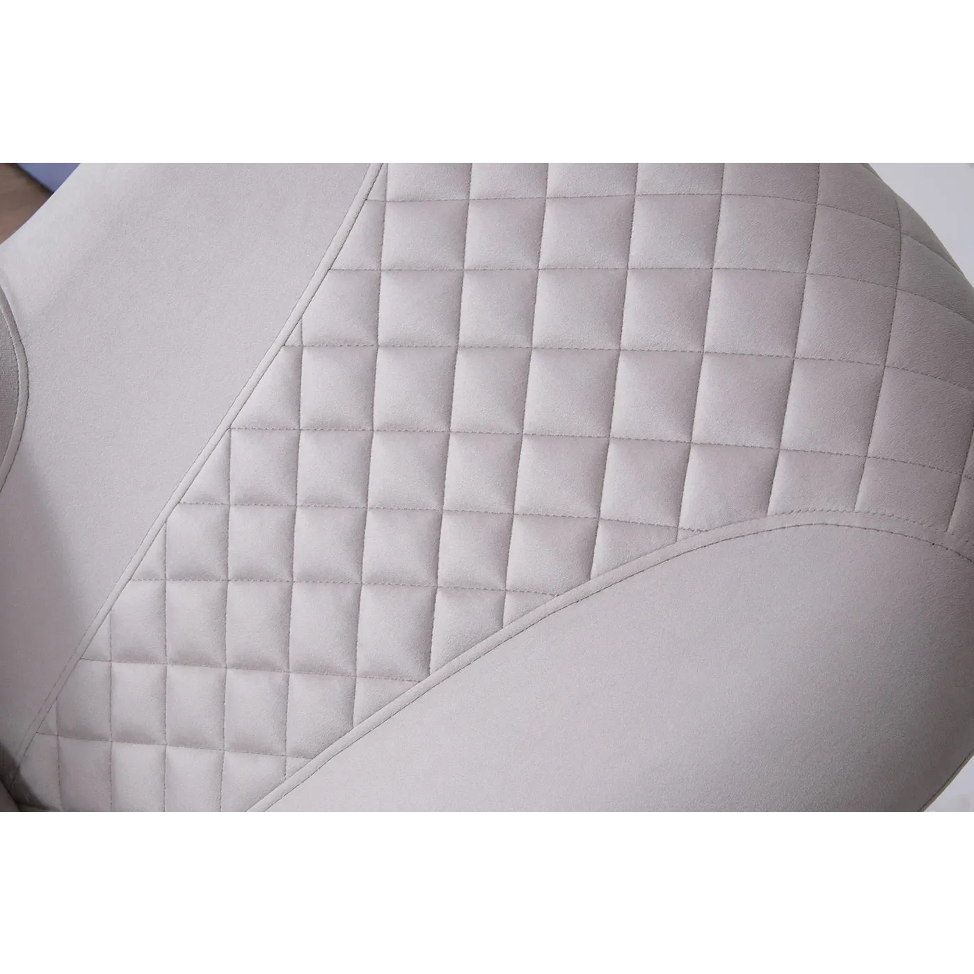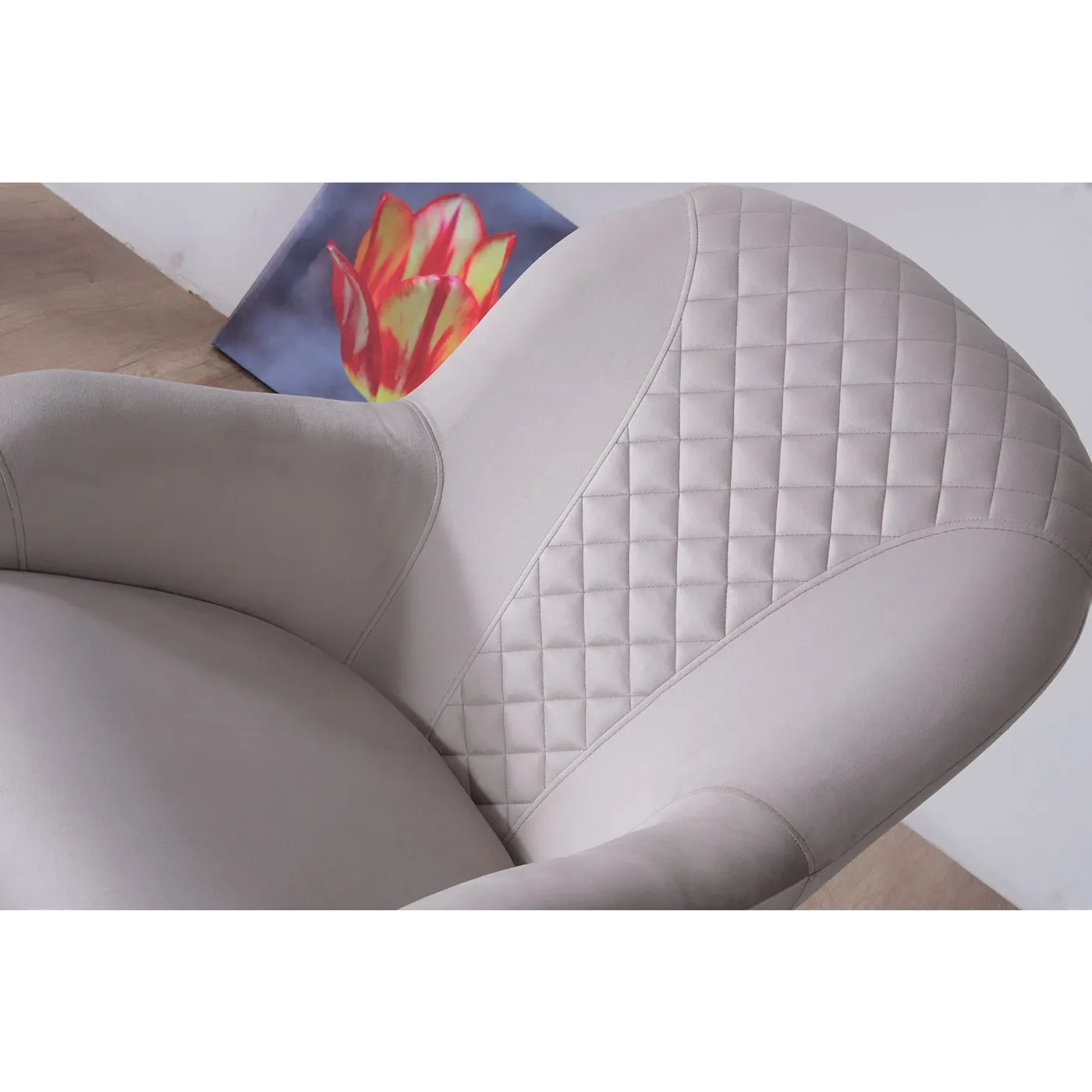 La delicata tonalità grigia del tessuto assicura un perfetto inserimento della poltrona a tutte le finiture, sia chiare che scure.