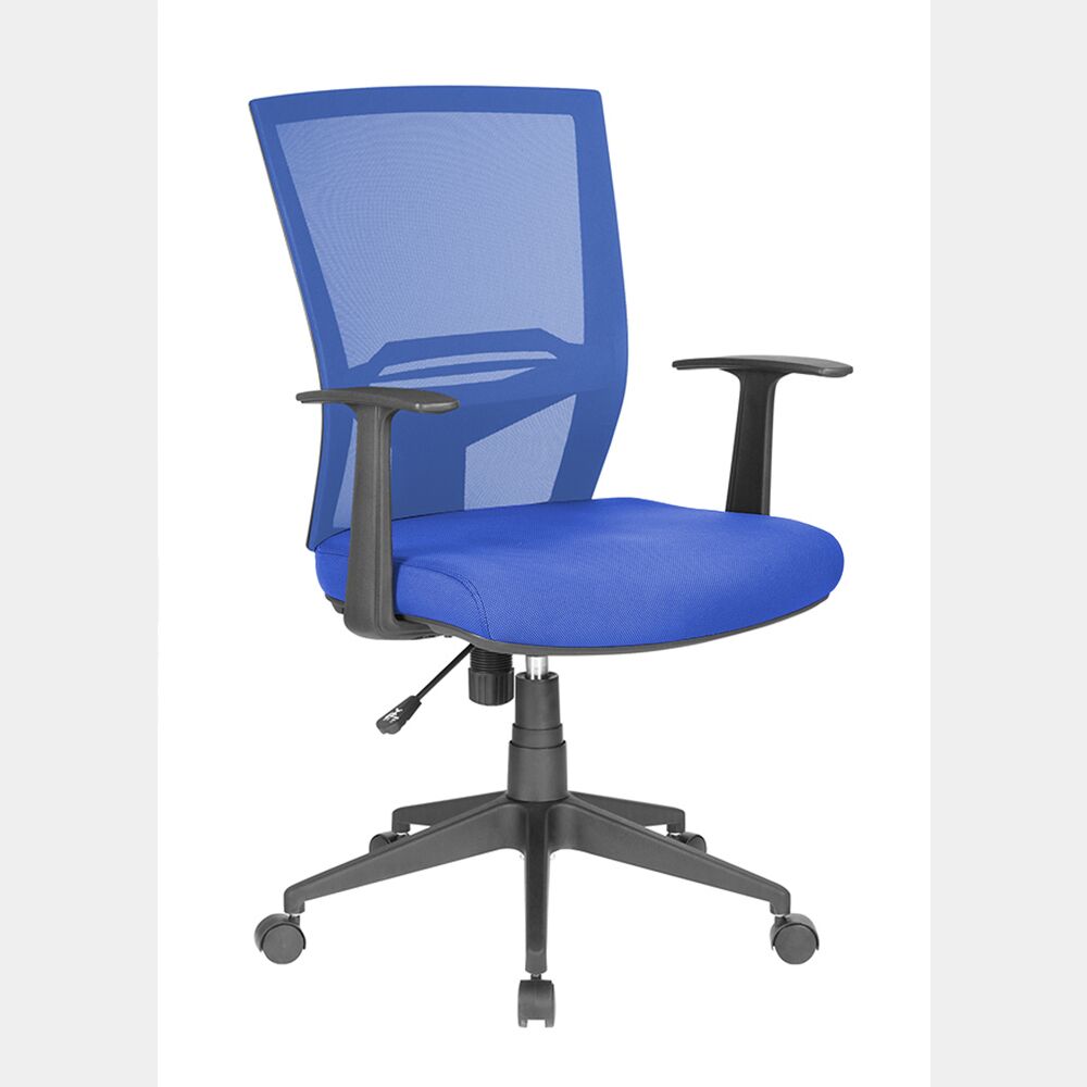 E' presente il meccanismo oscillante bloccabile e la manopola per la regolazione di tensione per il peso del corpo. Il rivestimentodella seduta è in tessuto imbottito blu mentre quello dello schienale è in rete tecnica traspirante blu.