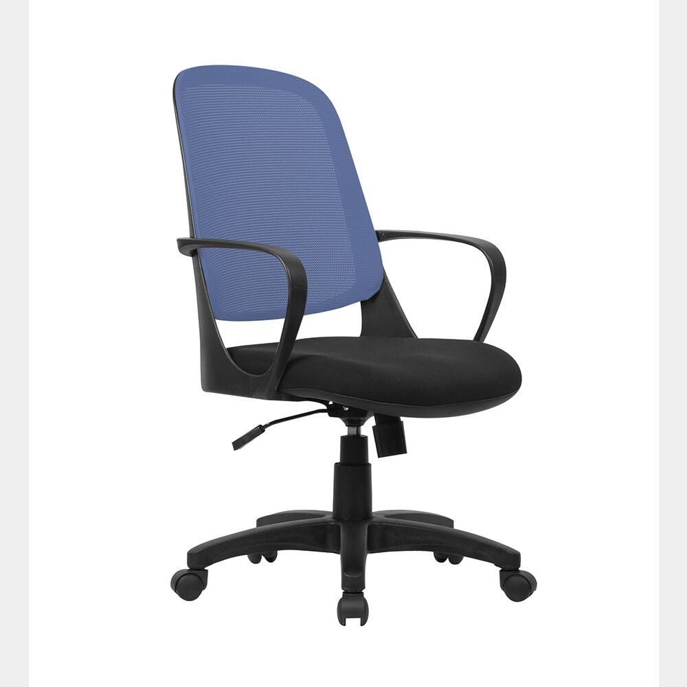 Poltrona operativa da ufficio Nera con schienale Blu