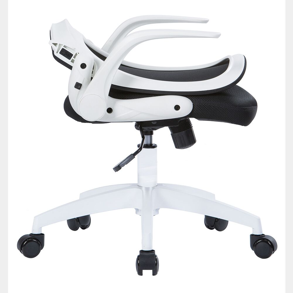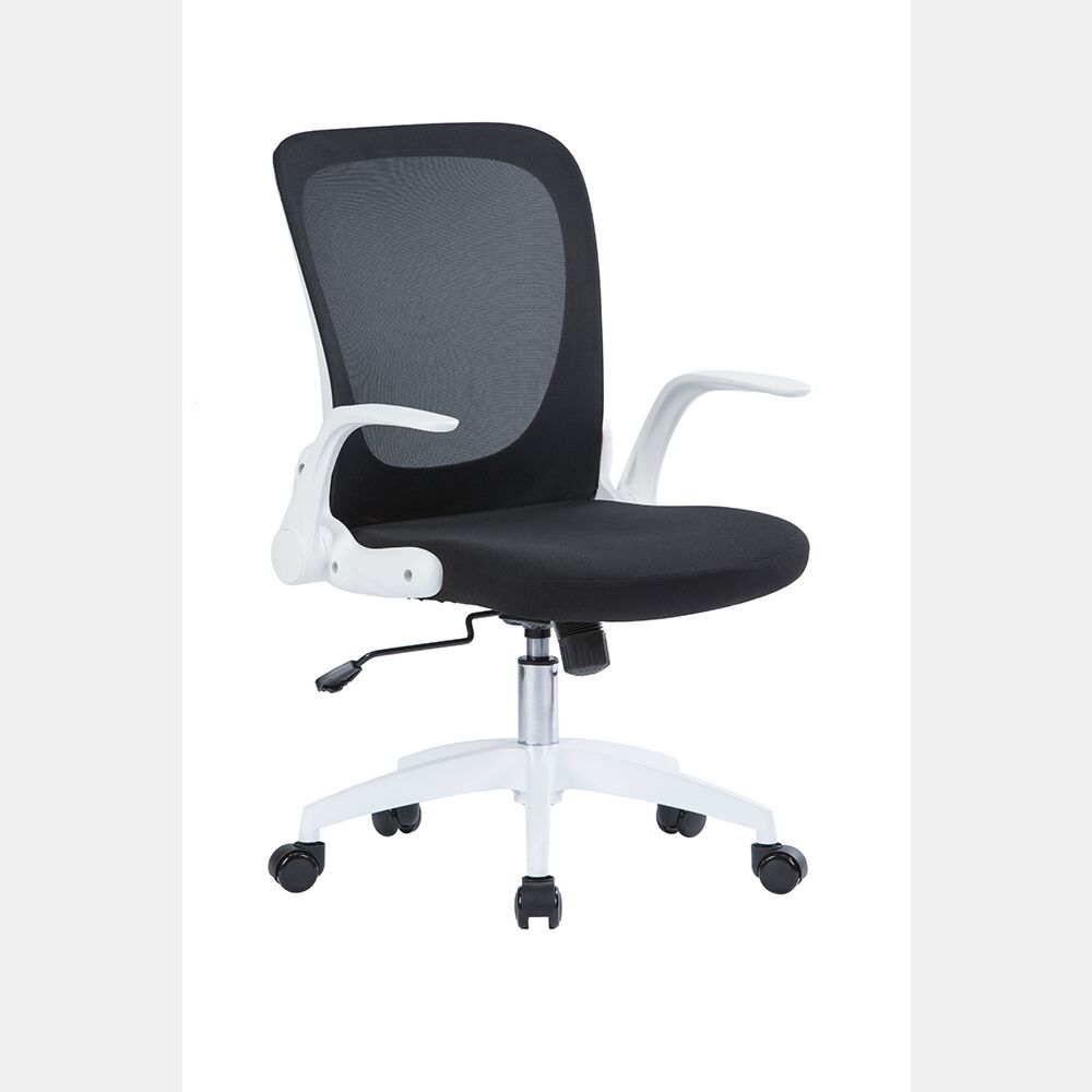 Grazie al meccanismo oscillante bloccabile e alla manopola per la regolazione di tensione per il peso del corpo è assicurata la comodità durante lo studio/lavoro. Il rivestimento della seduta è in tessuto imbottito nero mentre il rivestimento dello schienale è in rete tecnica traspirante nera. La struttura è bianca.