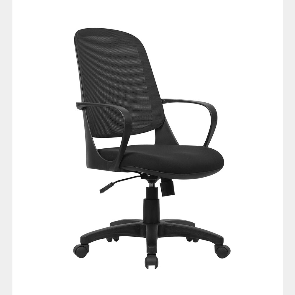 La poltrona operativa è dotata di meccanismo oscillante bloccabile e manopola per la regolazione di tensione per il peso del corpo, questo assicura un'estrema comodità. Il rivestimento della seduta è in tessuto imbottito nero mentre quello dello schienale è in rete tecnica traspirante nera.