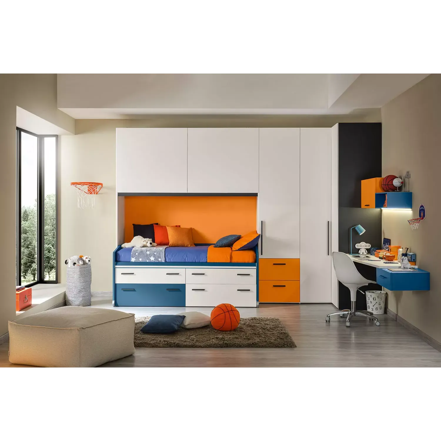 Le finiture proposte per la cameretta sono Bianco luce, Grafite e Carota, grazie ad un'ampio campionario disponibile è possibile personalizzare l'armadio adattandolo ai propri gusti.