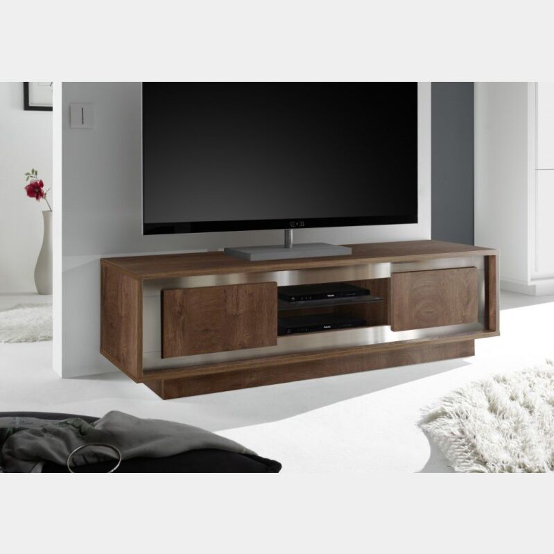 Porta TV - Credenza a due Ante e vano a giorno centrale, ante dotate di chiusura ammortizzata, ed ad apertura esterna (come in foto).La struttura è cognac così come i frontali sono in finitura cognac.