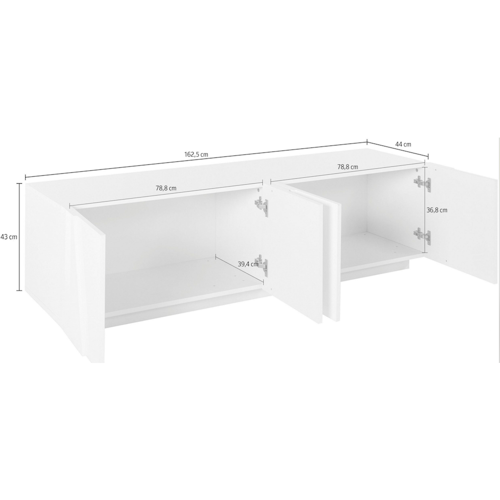 Pratico e moderno questo porta Tv è un'ottima soluzione per chi desidera un arrendo semplice ma particolare. Nelle ante presenta dei disegni geometrici che lo valorizzano, è dotato di 2 vani di 78.8 cm, risulta quindi molto capiente e pratico. La profondità utile è 39.4 cm.