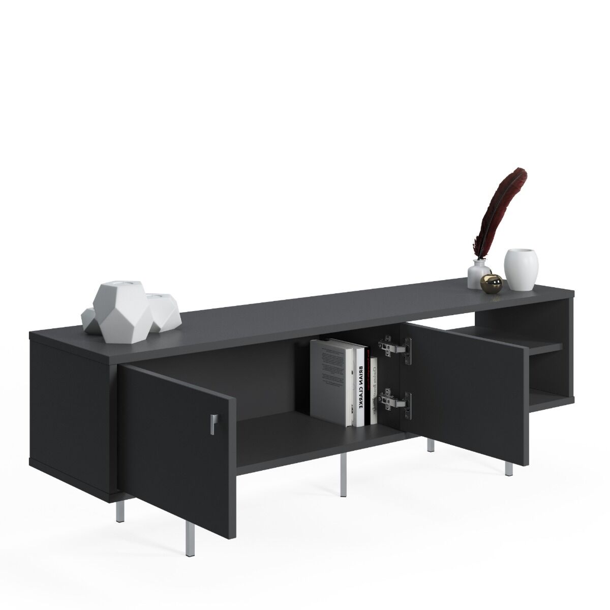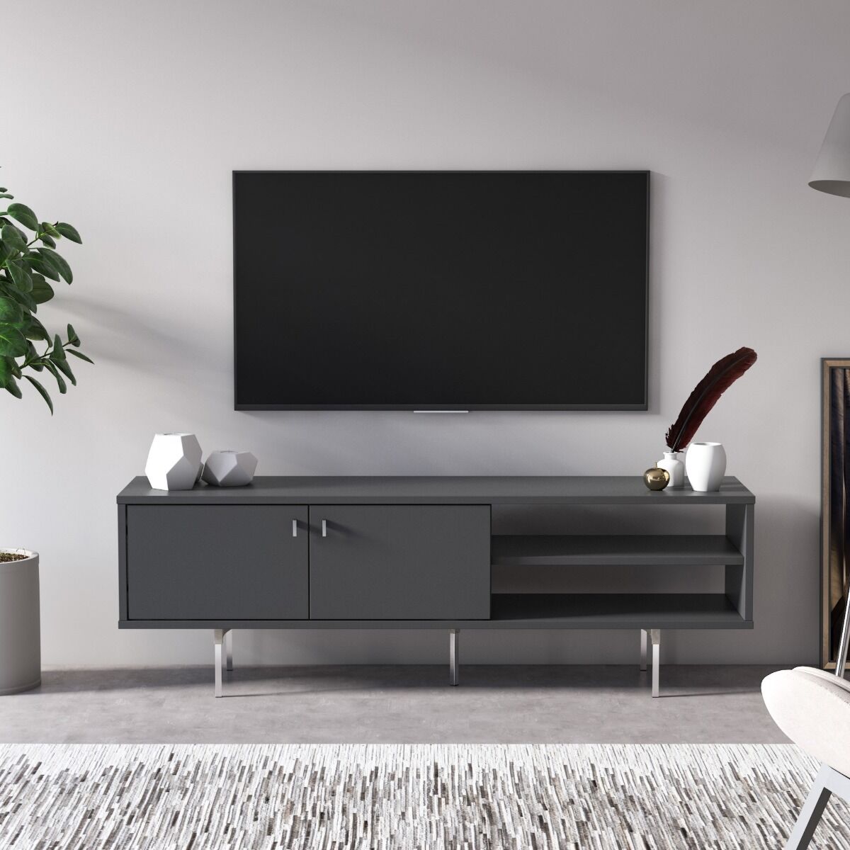 Il porta Tv Ankara presenta un design semplice e una finitura moderna che caratterizza l'ambiente. E' adatto ad un arredamento minimal i cui elementi presentano un design pulito ma che non passano inosservati. La struttura è studiata per garantire un prodotto ricercato: le particolari maniglie richiamano i piedini per creare un punto luce.