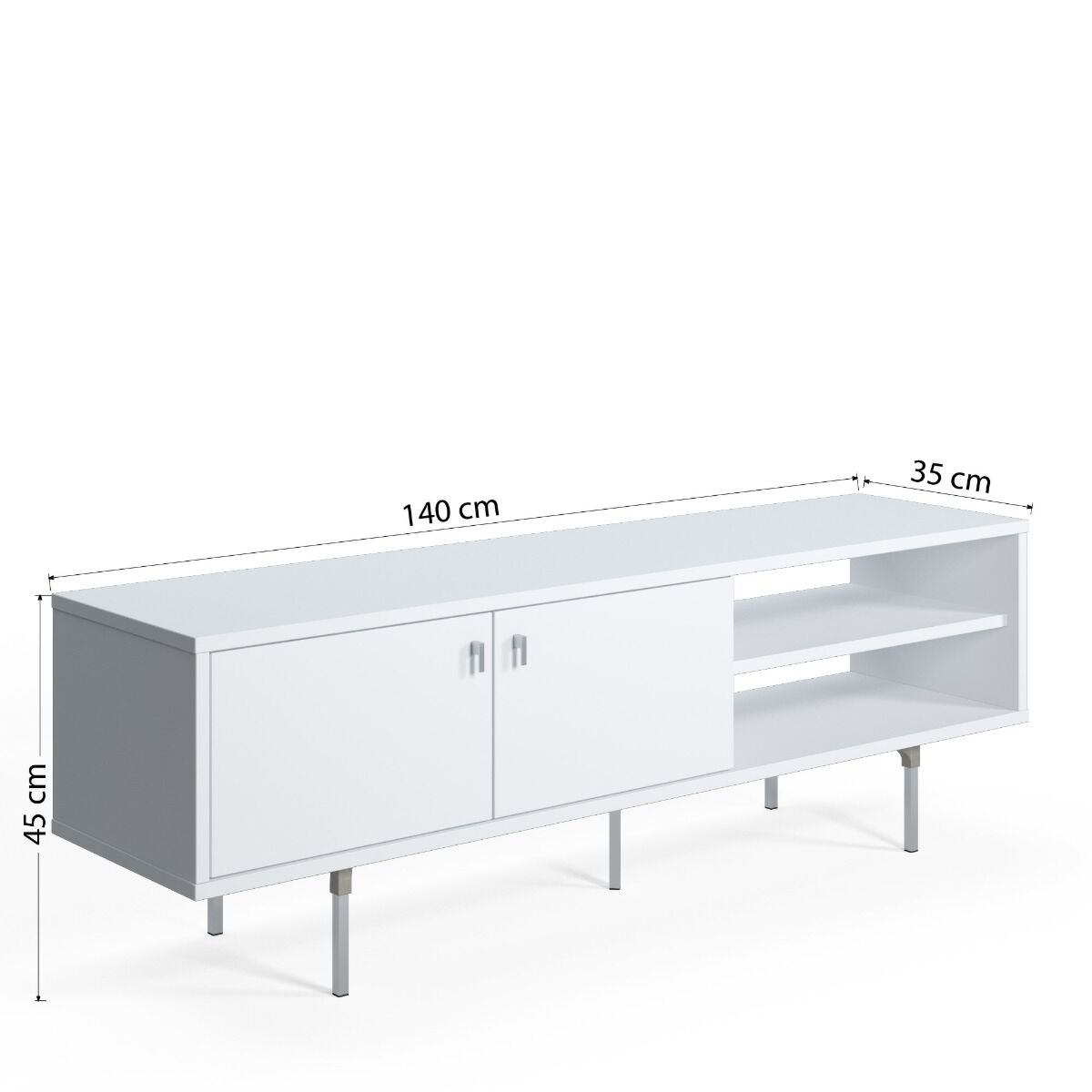 Il porta Tv Ankara presenta un design semplice e una finitura luminosa che rende accogliente l'ambiente. E' adatto ad un arredamento minimal i cui elementi presentano un design pulito ma che non passa inosservato. La struttura è studiata per garantire un prodotto ricercato: le particolari maniglie richiamano i piedini e creano un punto luce.