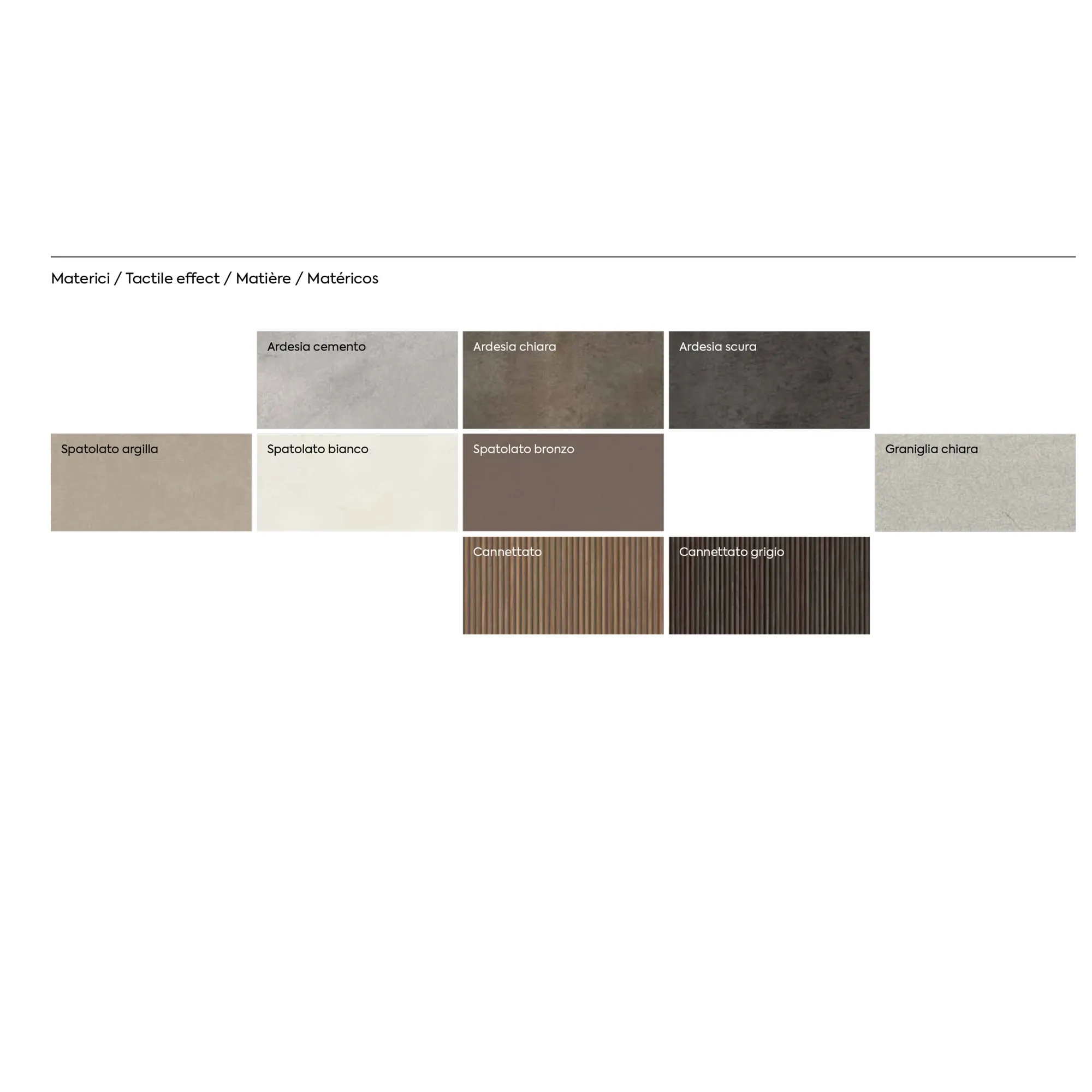 Le finiture proposte, Cannettato STAMPATO e Noce moro, possono essere personalizzate tramite configuratore. Grazie all''ampia gamma di tinte materiche è possibile adattare il mobile tv al proprio living, ottenendo un arredo ricercato e personale.