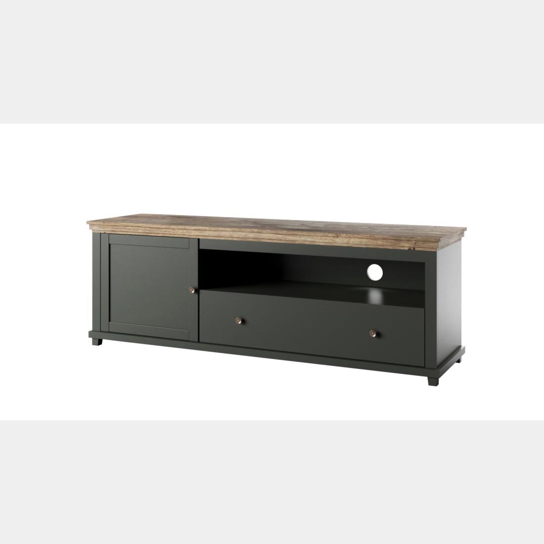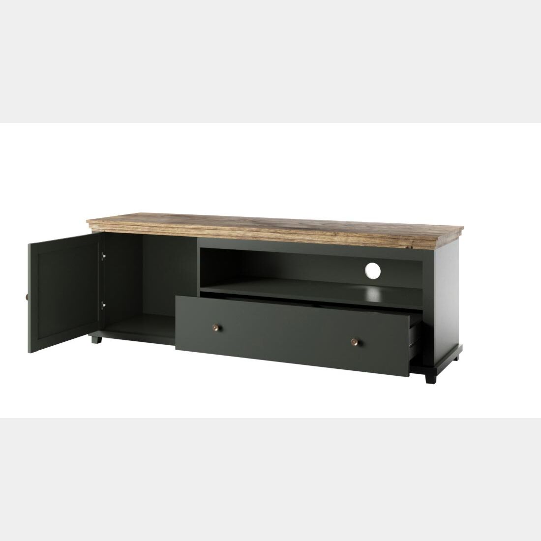 Porta TV composto da 1 anta e 1 cassetto, verde scuro e quercia