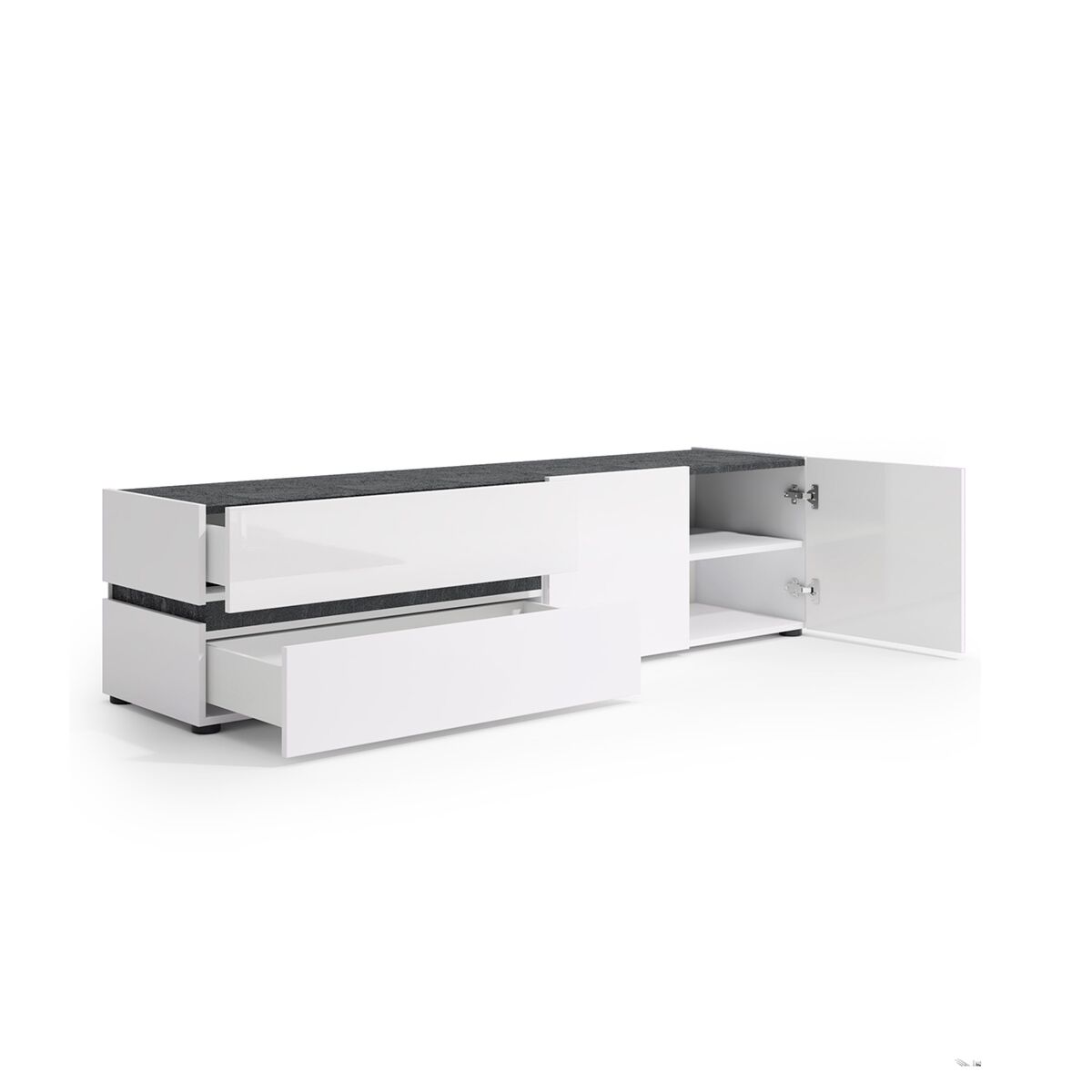 Porta tv con cassetti e un'anta, finitura Bianco laccato lucido
