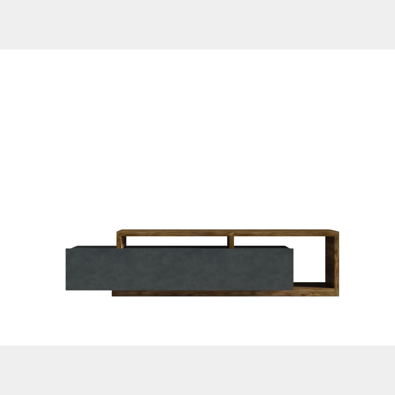 Porta TV con cassetto, finitura noce e antracite spatolato