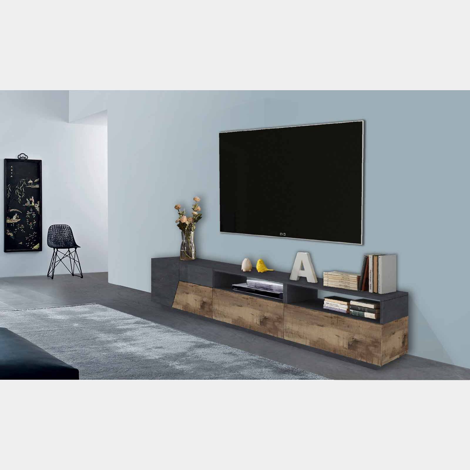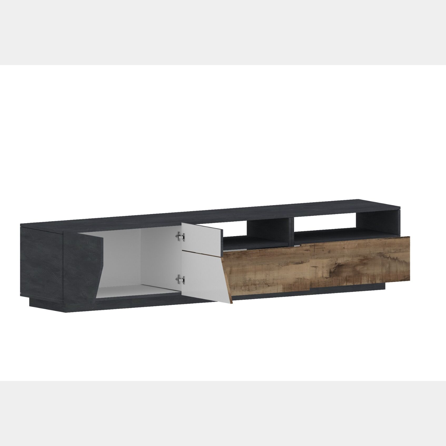 Porta TV dal design geometrico larghezza 200 cm, Pero e Ardesia