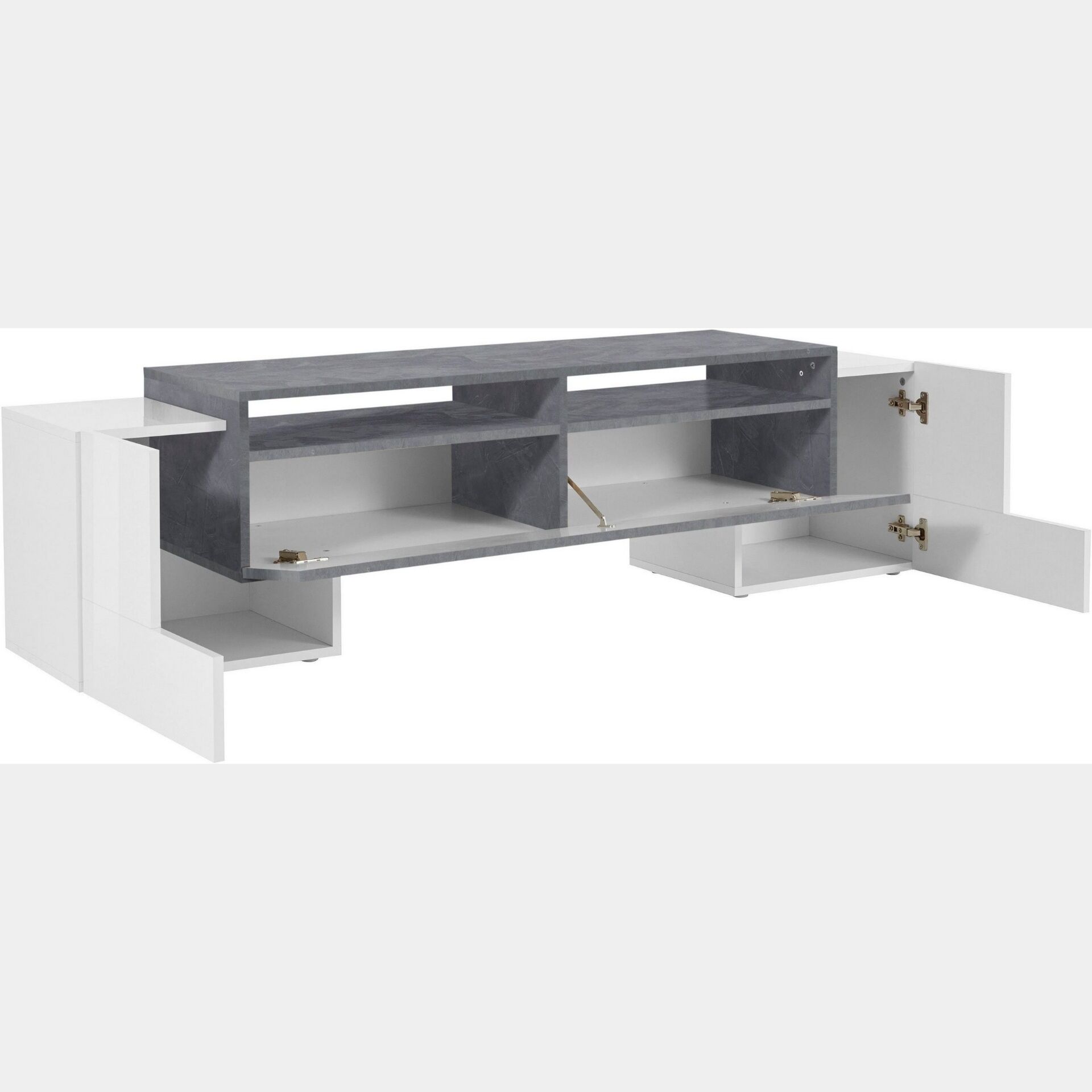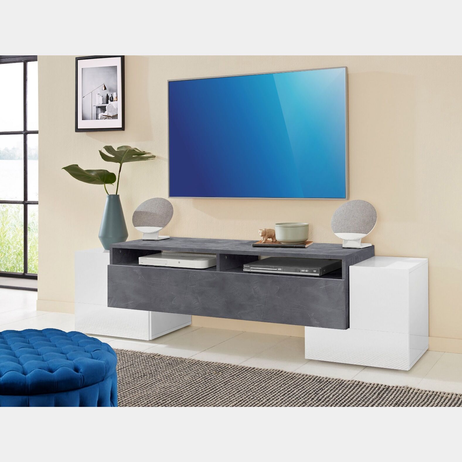 Porta tv Grigio Ardesia e Bianco lucido, 2 ante e una ribalta