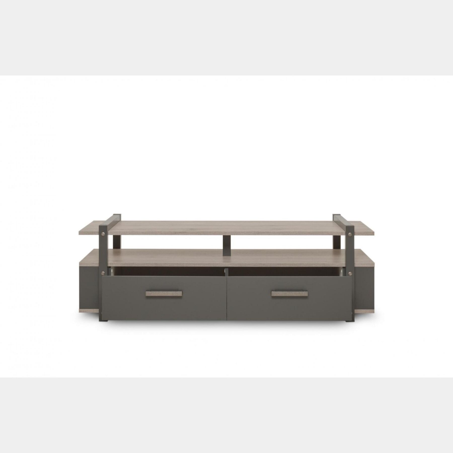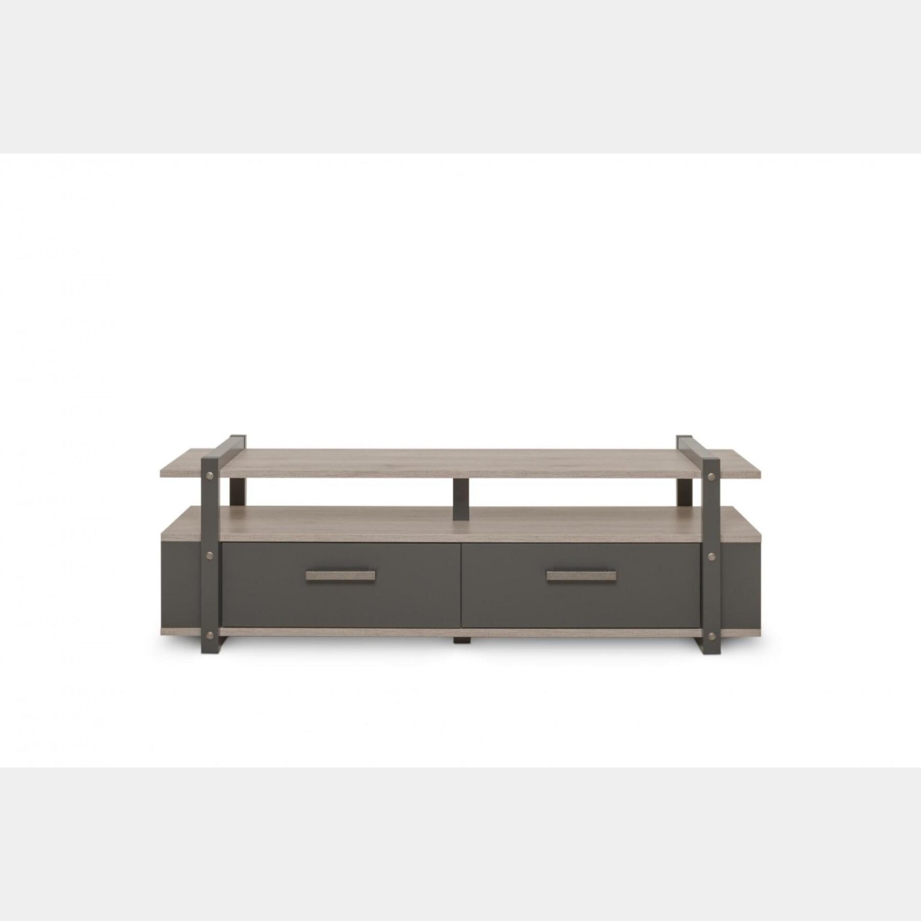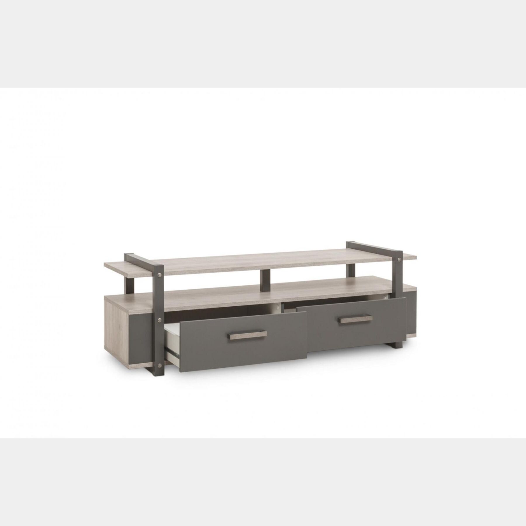 Porta TV industrial con 2 cassetti in finitura Antracite e Quercia