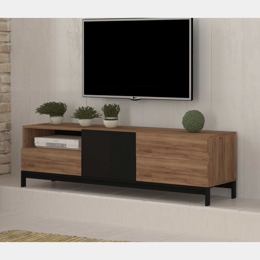 Porta TV industry 3 cassetti 1 anta in finitura nero e noce
