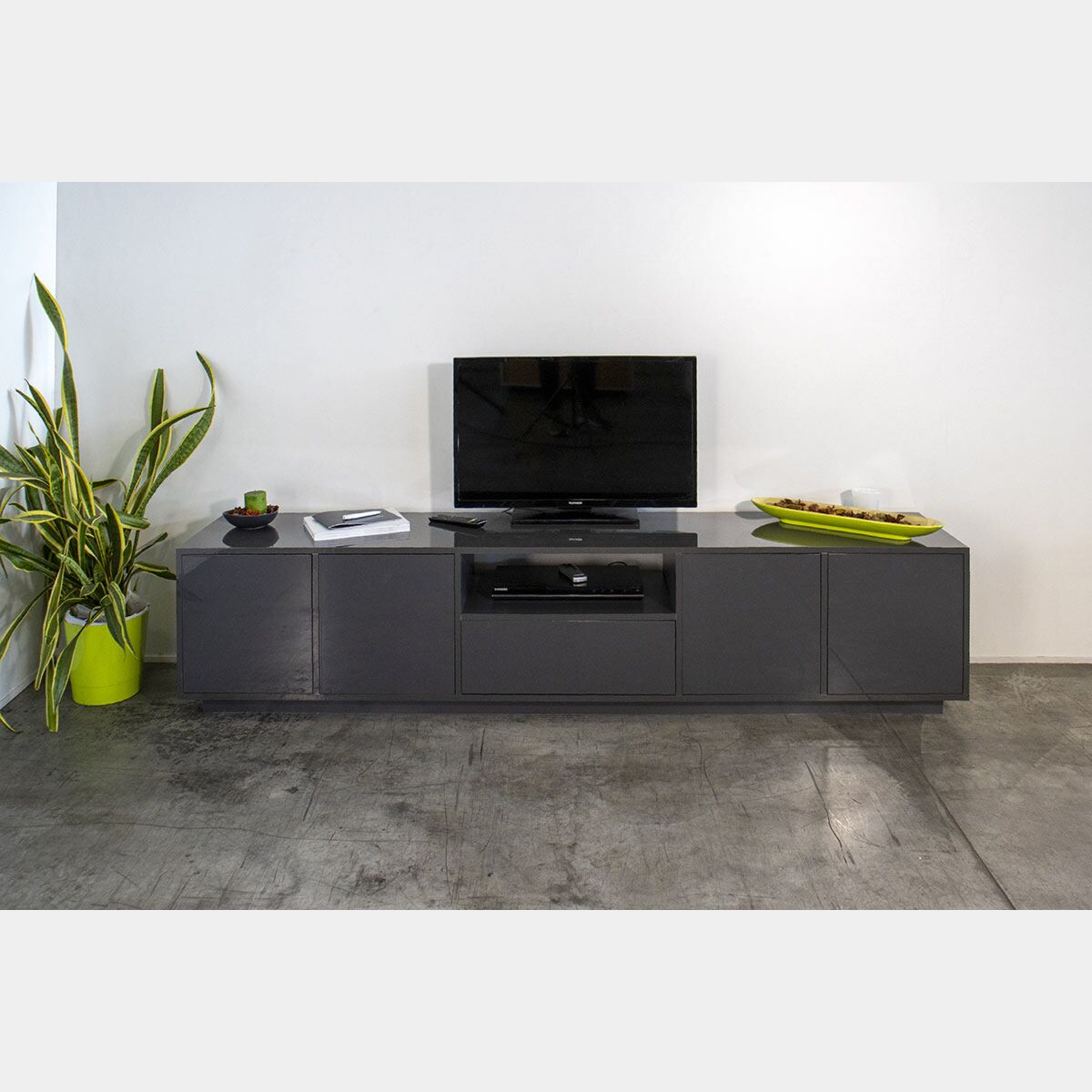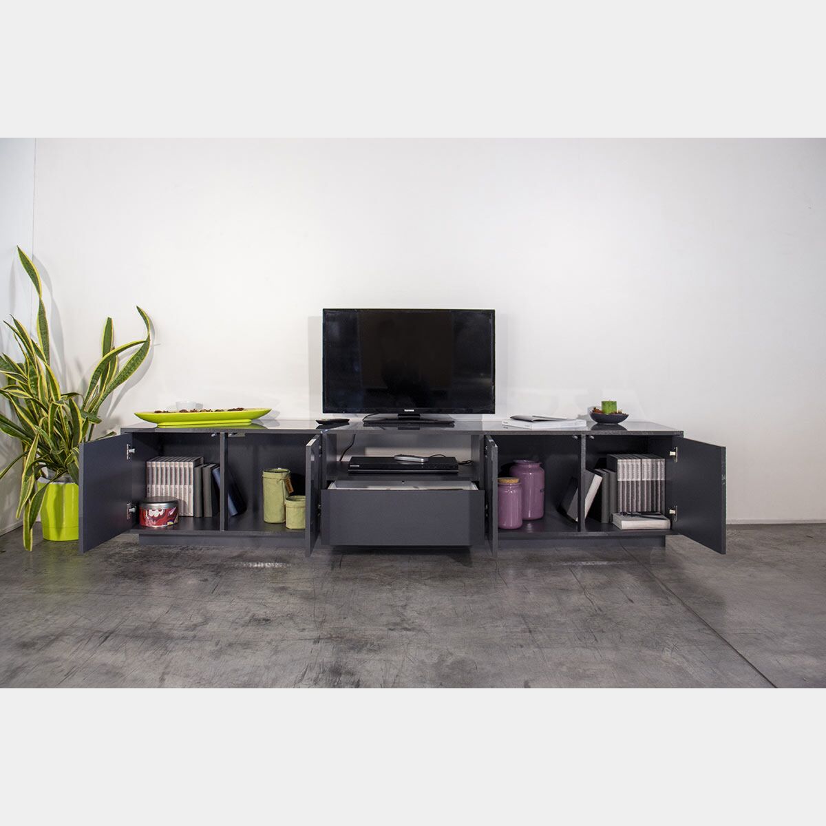 Porta tv laccato lucido antracite con cassetto centrale e quattro ante laterali
