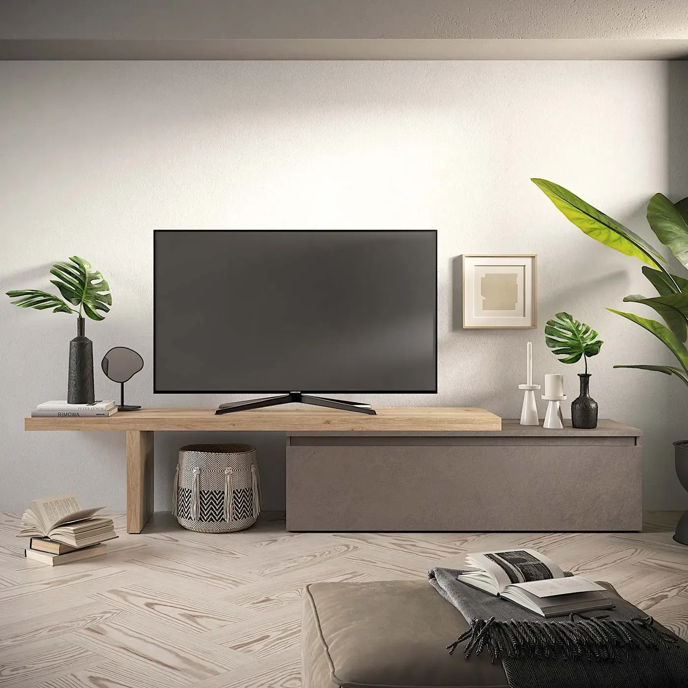 La soluzione proposta da Zenzero Shop è un porta tv composto da un mensolone ed una base con cassettone nelle finiture Cadiz e Bronzo.