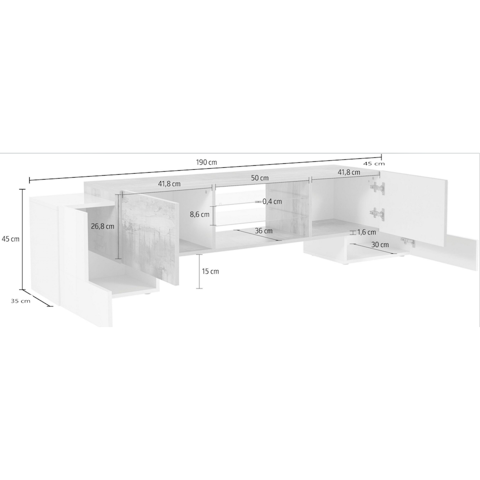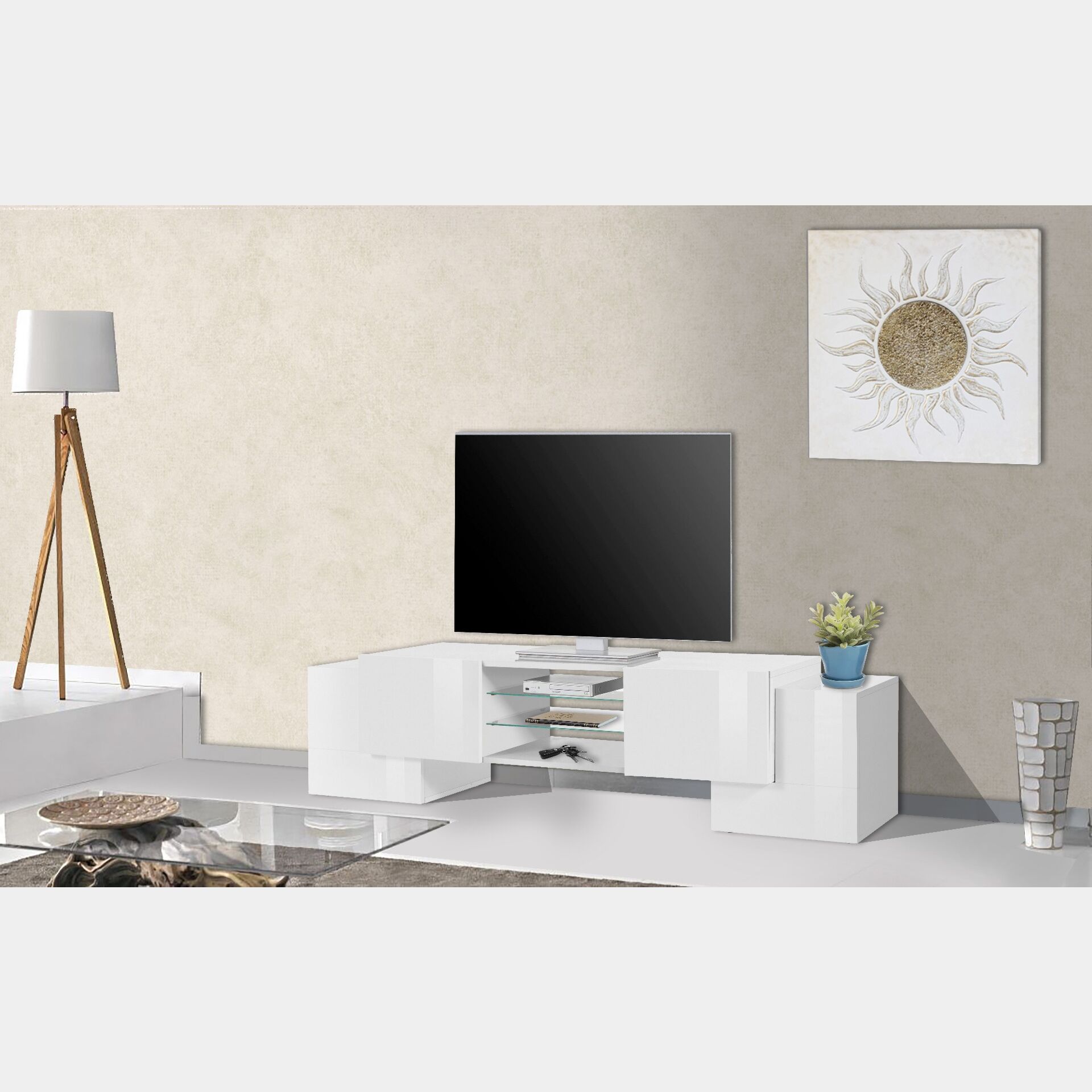 Porta tv moderno Bianco laccato lucido, 4 ante