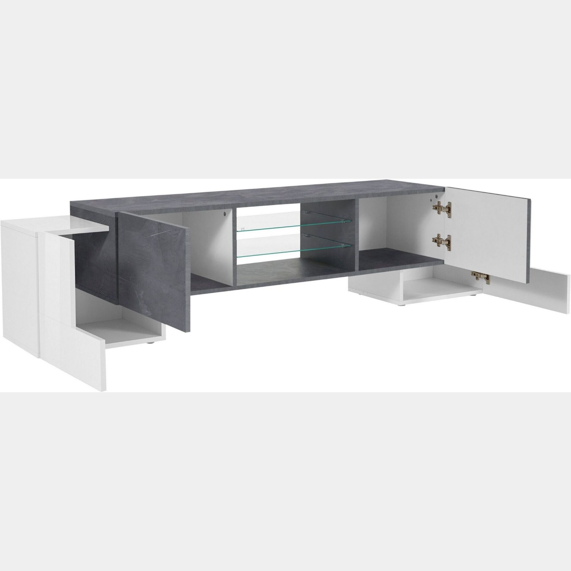 Porta tv moderno Grigio Ardesia e Bianco lucido, 4 ante