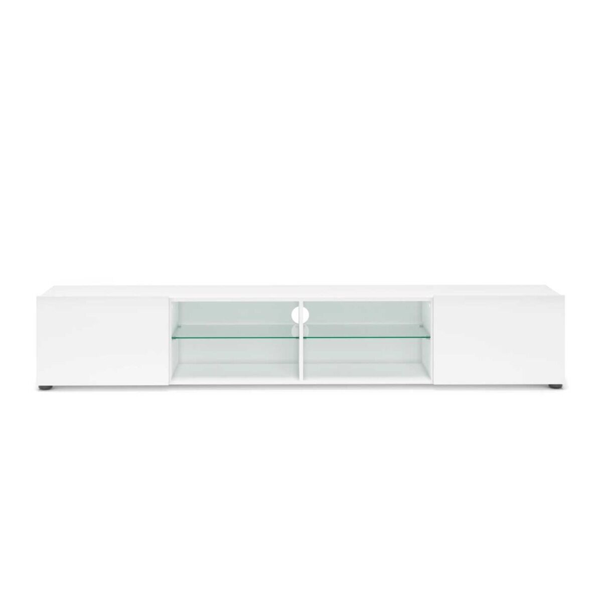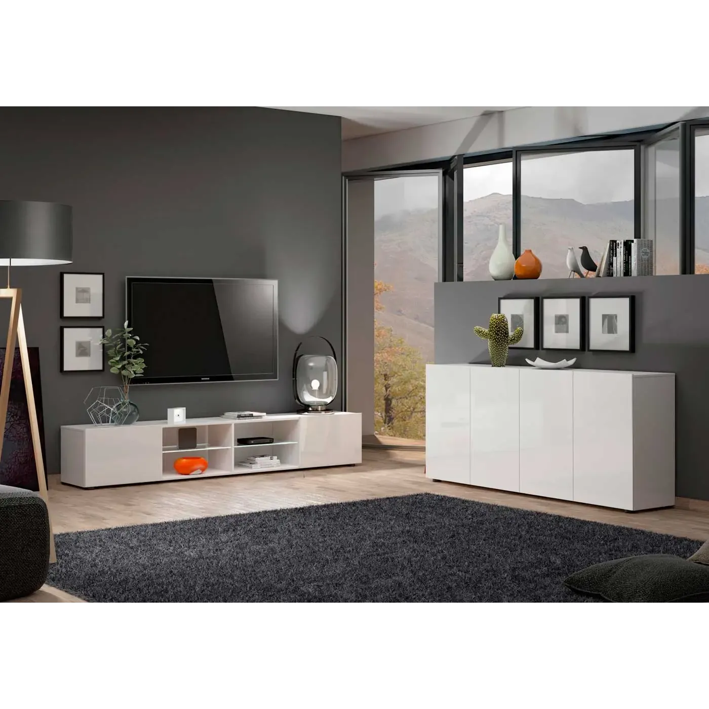Porta TV moderno larghezza 225 cm, colore Bianco Lucido