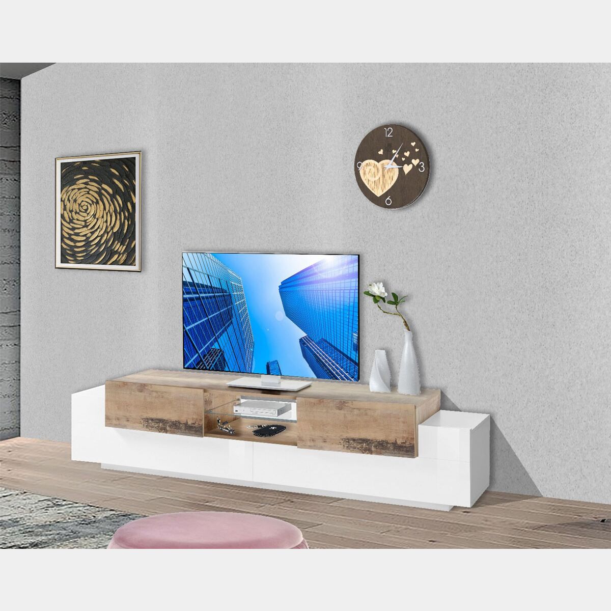 Porta tv scontato bianco lucido e pero, 2 ante 2 ribalte