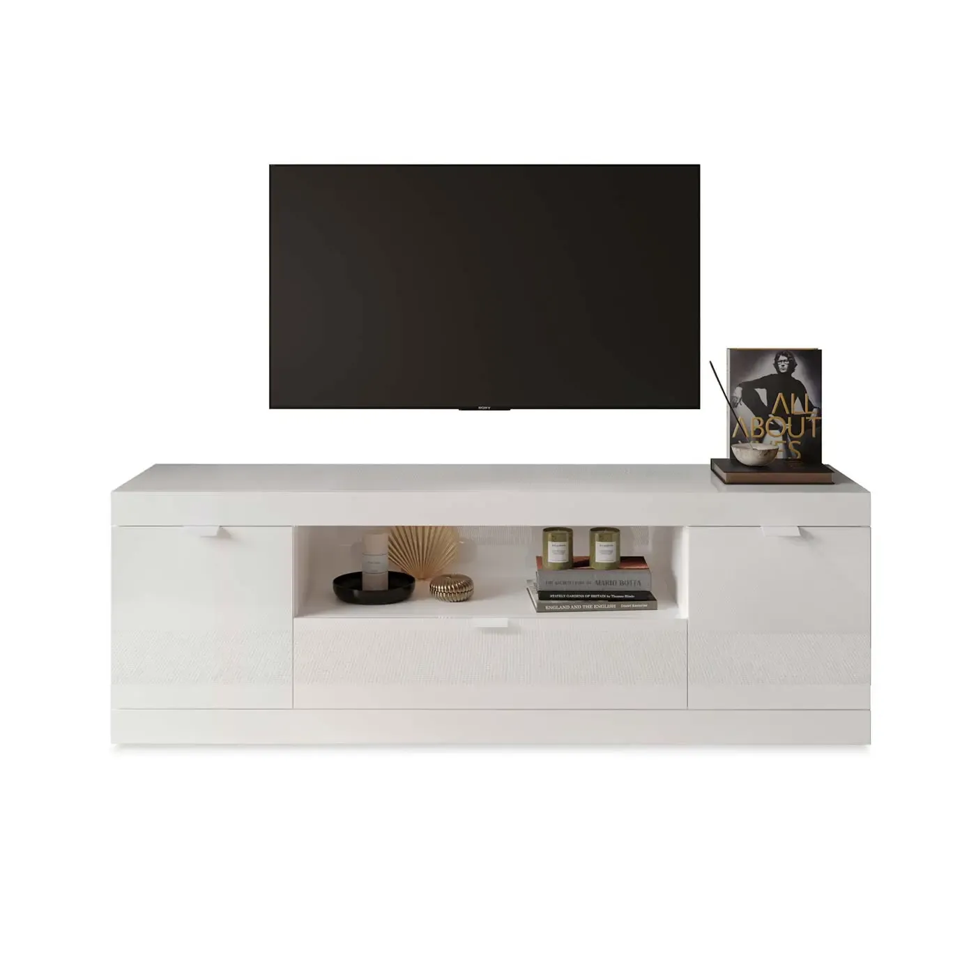 Porta tv moderno, 180x63x42 h cm, Bianco lucido