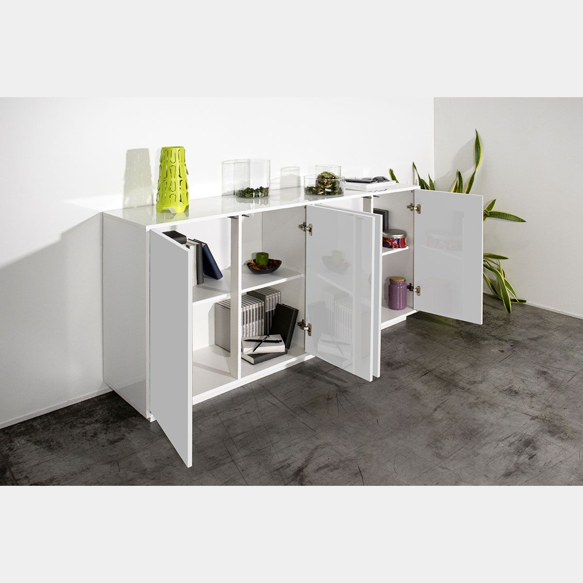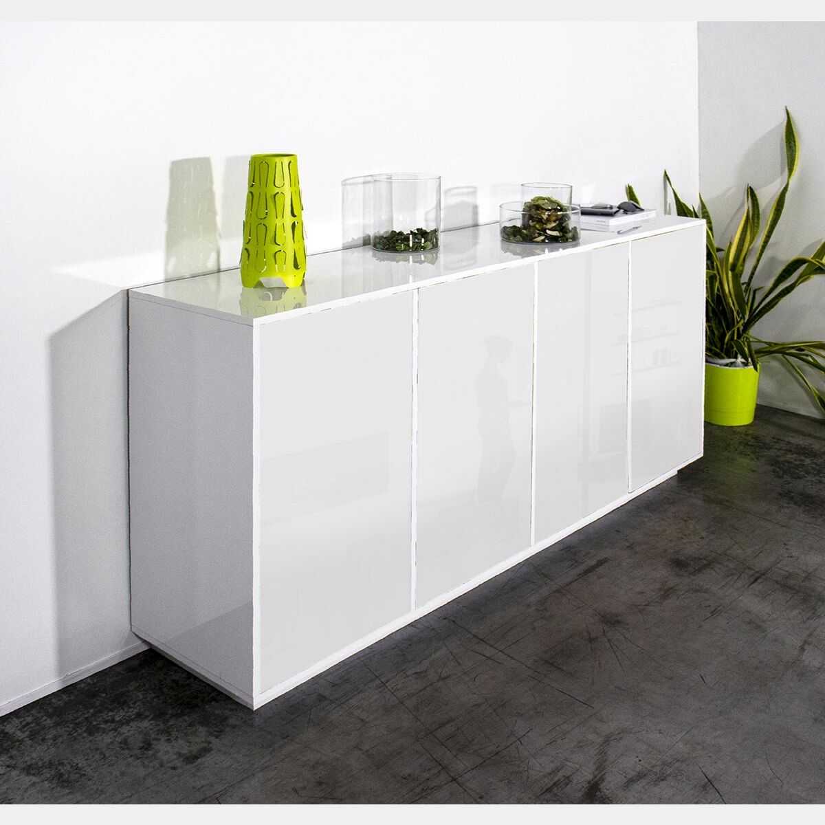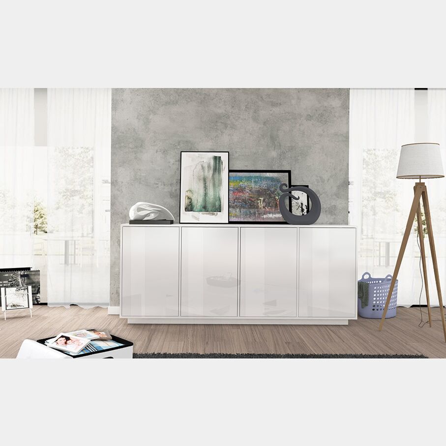 Pratica e moderna madia con quattro ante in finitura bianca laccata lucida