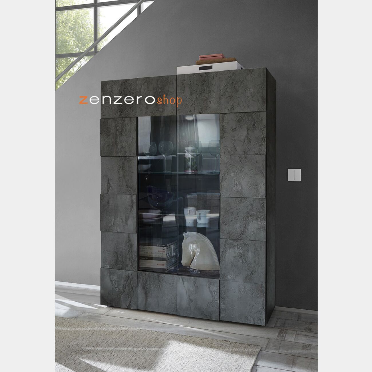 Pratica Vetrina dal design moderno a 2 ante, finitura Ossido